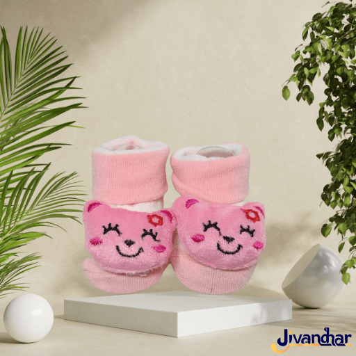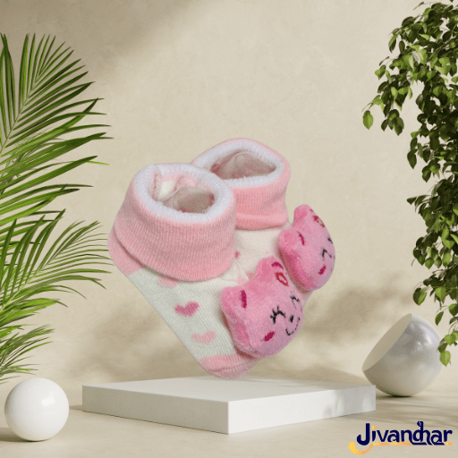 Crafted from premium-quality cotton, these socks are breathable, stretchable, and super gentle on delicate skin. The soft elastic bands ensure a snug fit without leaving marks, while the lightweight plush toys add fun without any discomfort. Available in multiple colors and cute animal or character designs, these socks are the perfect everyday essential for playtime, outings, or lounging at home.